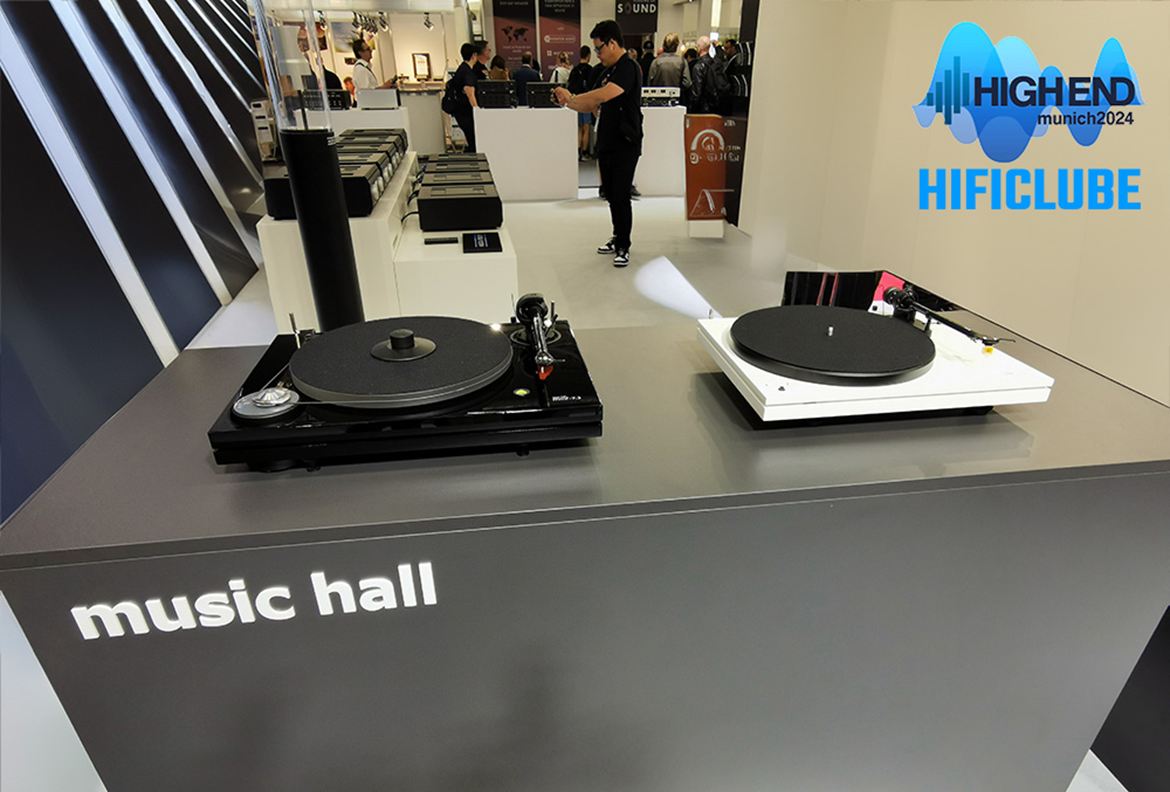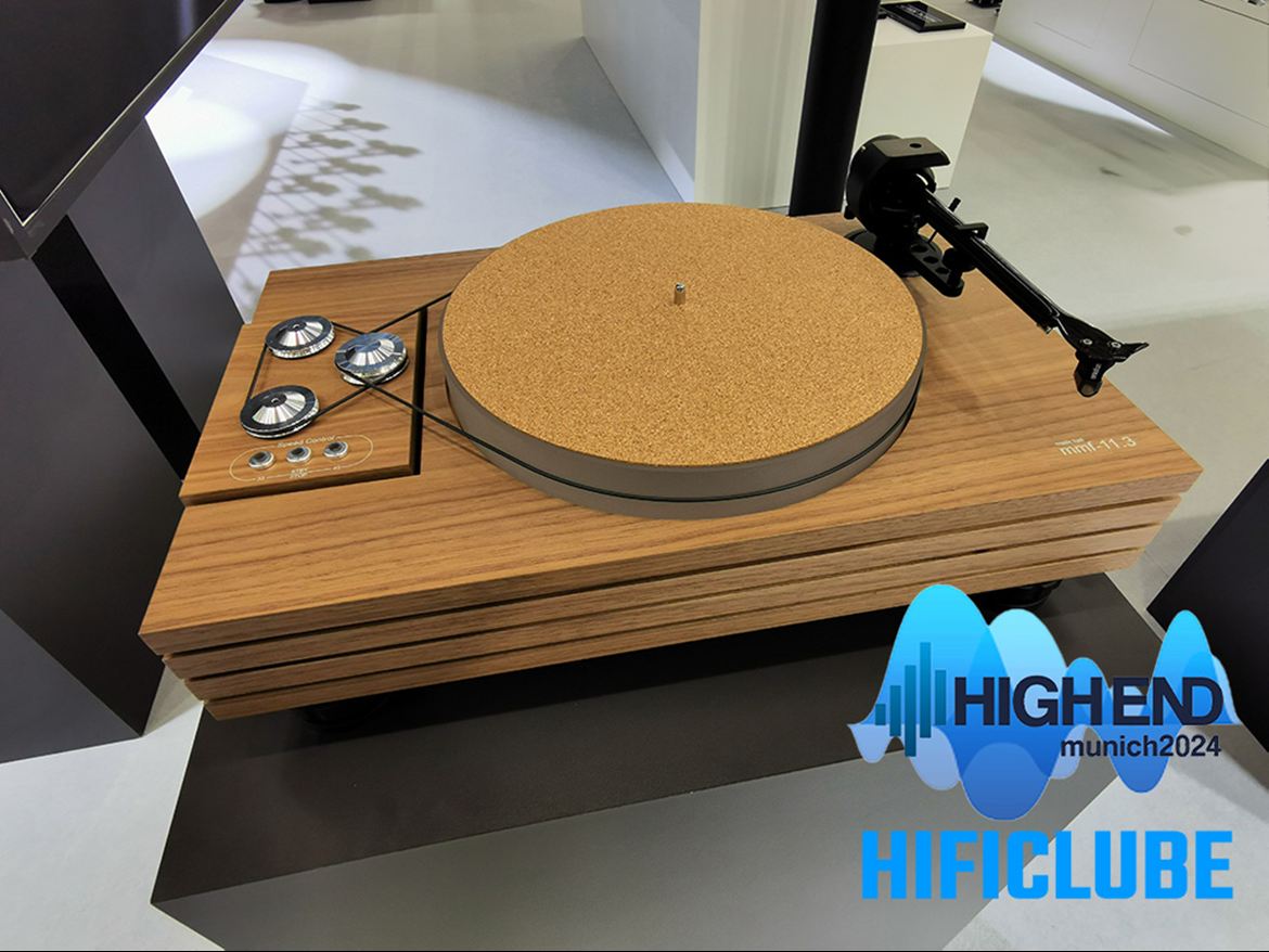Music Hall mmf 11.3 c/ tapete de cortiça. Era esta a principal novidade no stand da Music Hall. Principais características: Plinto quádruplo. Disponível com e sem a célula MC Ortofon Cadenza Black. Nova montagem de motor independente e isolada. Montagem de motor duplo e volante que elimina a vibração do motor e da correia. Braço de peça única em fibra de carbono Evolution de 9 polegadas. Rolamentos de esferas ABEC 7 suíços e fio de cobre flexível. O contrapeso tem o centro de gravidade ao nível da ponta da agulha e atua como amortecedor de ressonância. VTA totalmente ajustável, azimute e elevação do braço amortecida. Controle eletrónico de velocidade exclusivo por microprocessador. Pés ajustáveis de suspensão magnética. Rolamento principal cerâmico invertido para funcionamento ultra silencioso. O preço c/célula Ortofon vai rondar os €6.000.