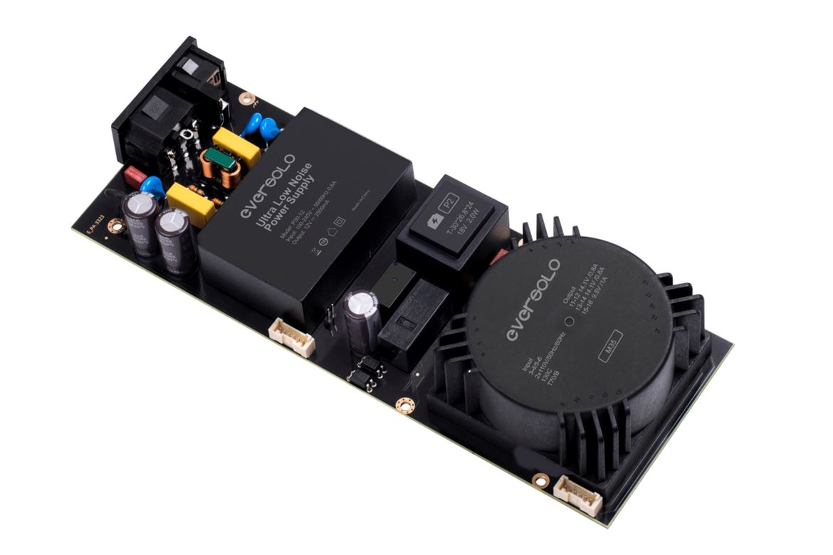 Fonte de alimentação dupla: comutada para a secção digital e linear para a secção analógica. Foto cortesia da Eversolo.