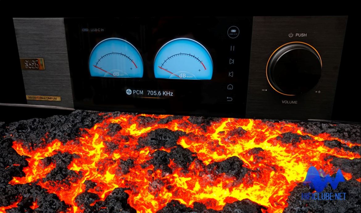 Nota: Além do logótipo dourado, as diferenças entre a versão standard do DMP-A6 e a versão Master, aqui analisada, reside na qualidade e precisão do duplo relógio interno (Accusilicon Femtosecond), nos Op-Amps (OPA1612 de ultrabaixa distorção) e na fonte de alimentação comutada com filtragem do ruído de alta frequência até aos 5MZ.